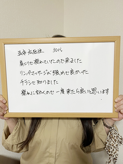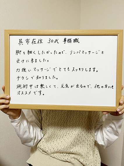 リンパの流れも良くなり、身も心も軽くなりました。今後も続けたいです。